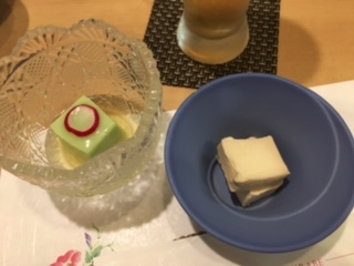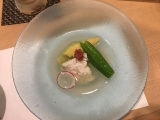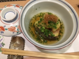 最近熊パワでTV放送があった事もあり、来られているお客さんの中には「TVを見てきました~」なんて声も聞こえてきました(^^)季節の1品が紹介されていたのですが、上↑「いちじくと鱧の揚げ出汁」を出されていたと思います。