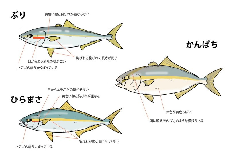 ブリ カンパチ ヒラマサ 似てるけど、別の種類のお魚ですね。