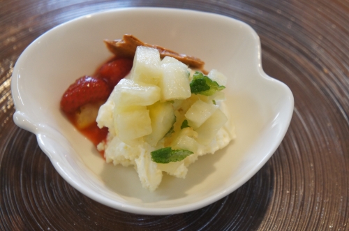 ・チキンとじゃがいものスパイシーカレー ・お魚とパプリカのマリネ ・グリーンピースの冷製スープ(写真なし)