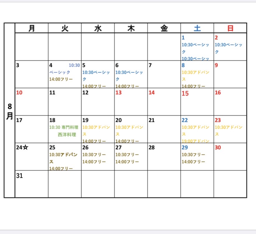 大好きな夏がやってきました!!今年はなにかと自粛気味ではありますが、新型コロナウイルス感染に注意しながら、ささやかな楽しみとして教室をご利用いただければと思っています。今月も参加人数を6人にまで減らし、プライベートレッスン、オンラインレッスンなど、臨機応変に対応していきます♪