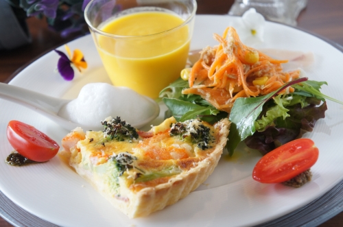 小エビとブロッコリーのキッシュ 人参のサラダドレッシング 人参と新ジャガイモのポタージュ
