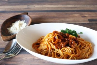 9月のベーシックはミートソーススパゲッティ♪手作りドレッシングに、サラダにスープ。