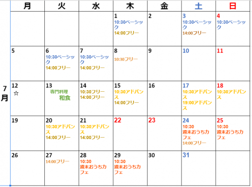 7月レッスンスケジュール