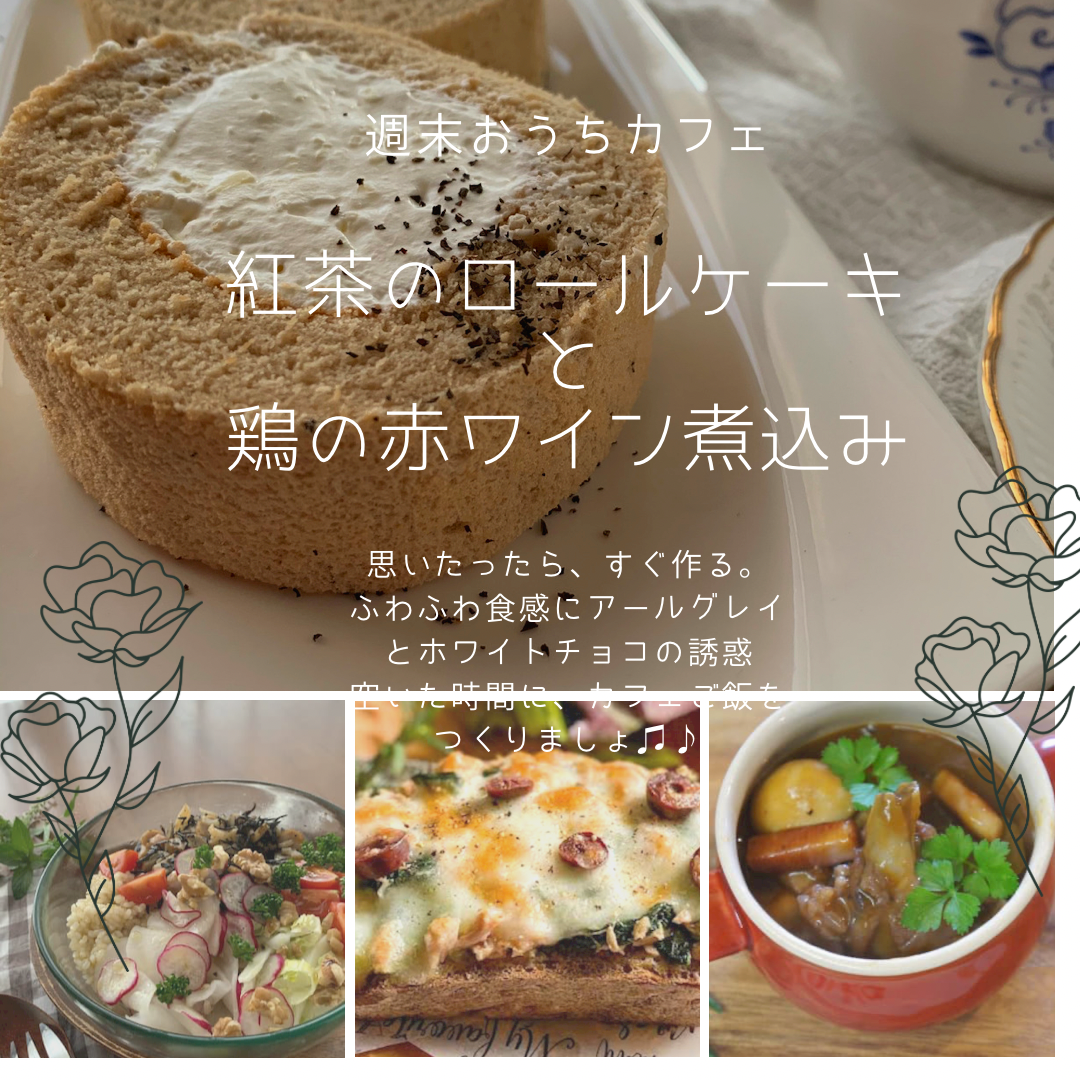 11月カフェクラスでは、アールグレイのロールケーキと、鶏の赤ワイン煮込みを作りますよ♫